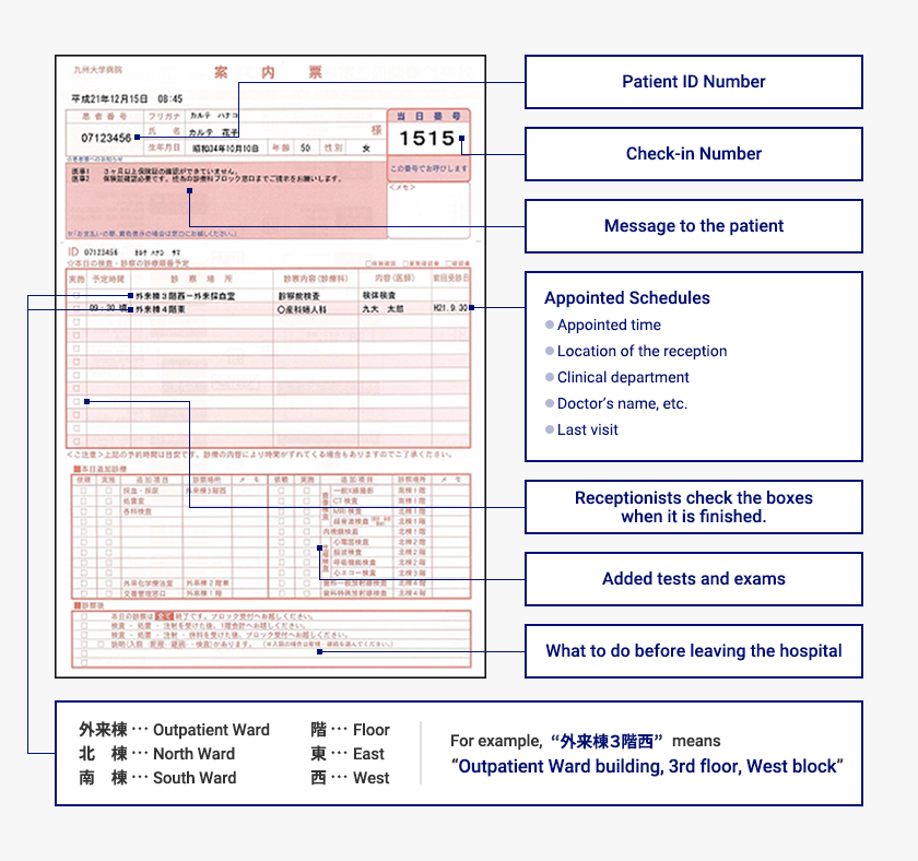 If you have an appointment on the day of your visit, you can use the Registration Machine (Note: The machine’s instructions are in Japanese only).