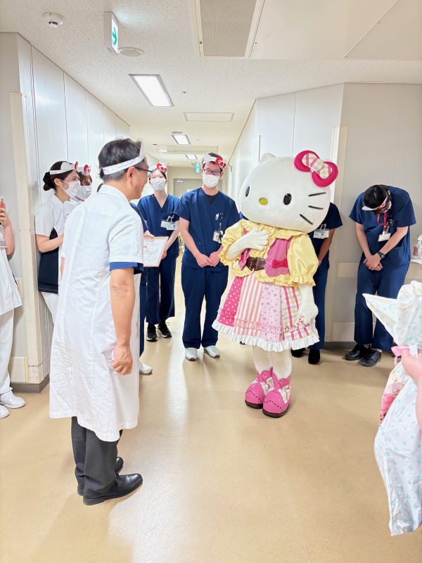 On Monday, May 12, Hello Kitty, a character from Sanrio Co., Ltd., visited the PICU and Pediatric Medical Center.