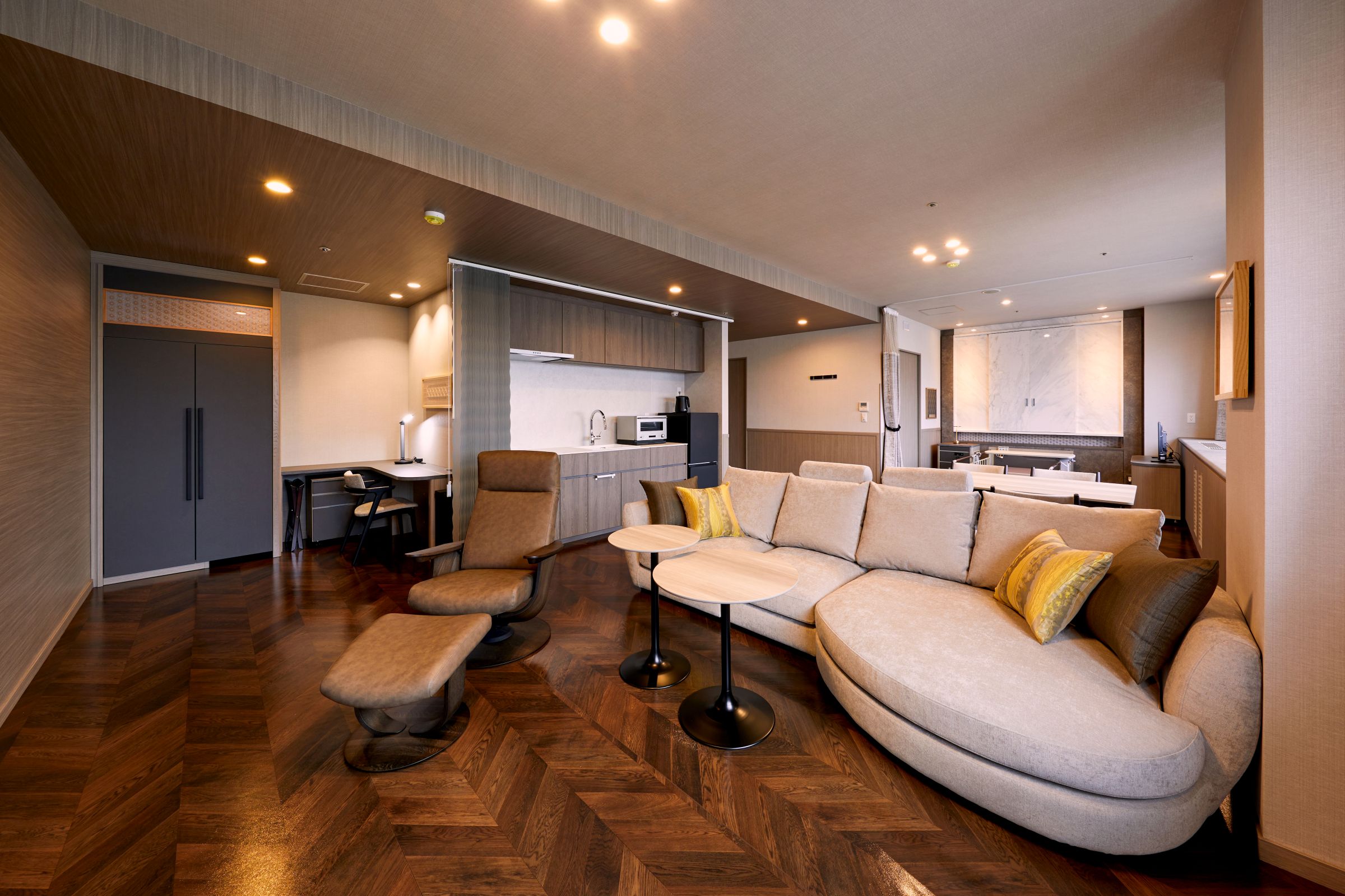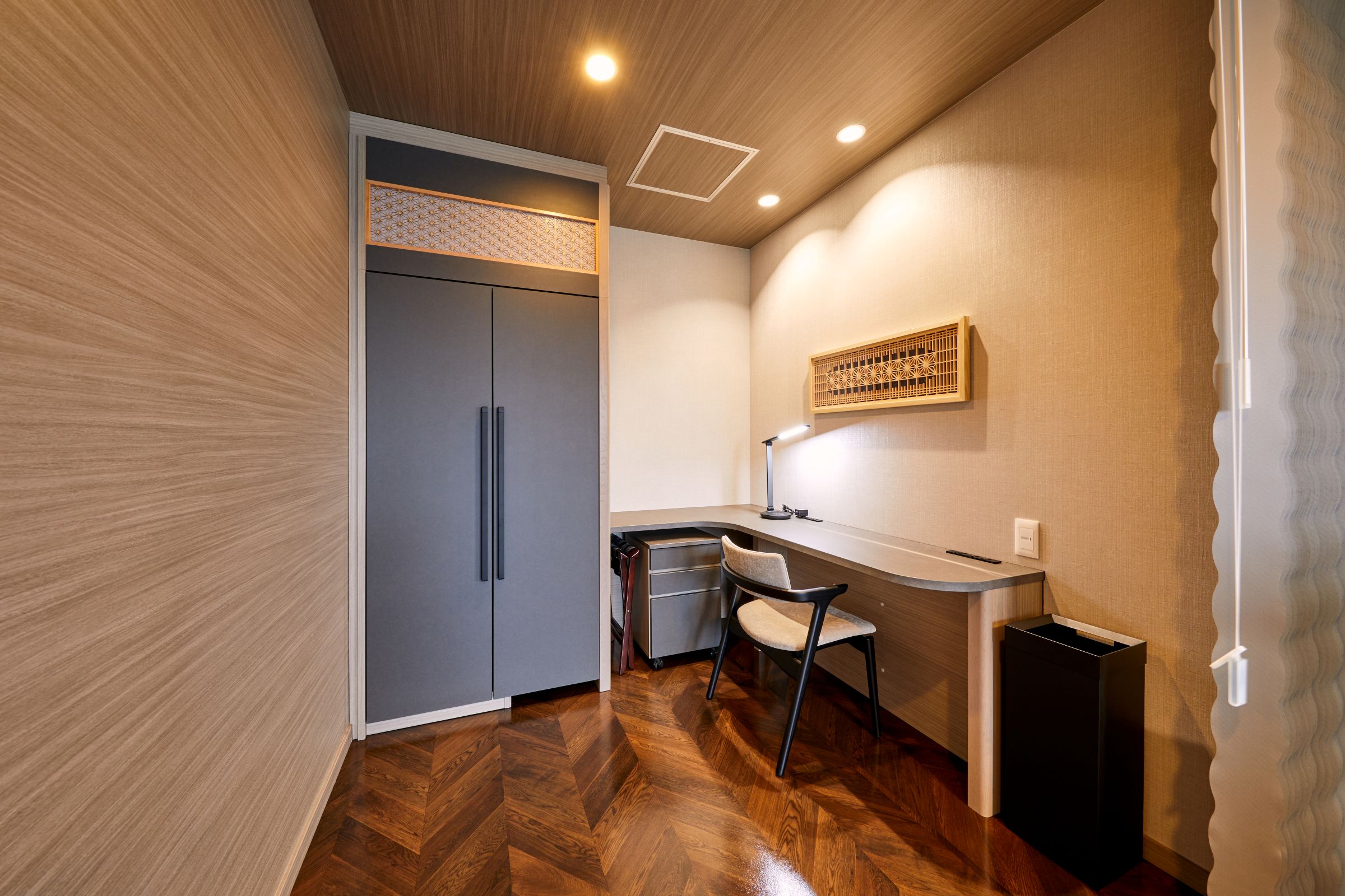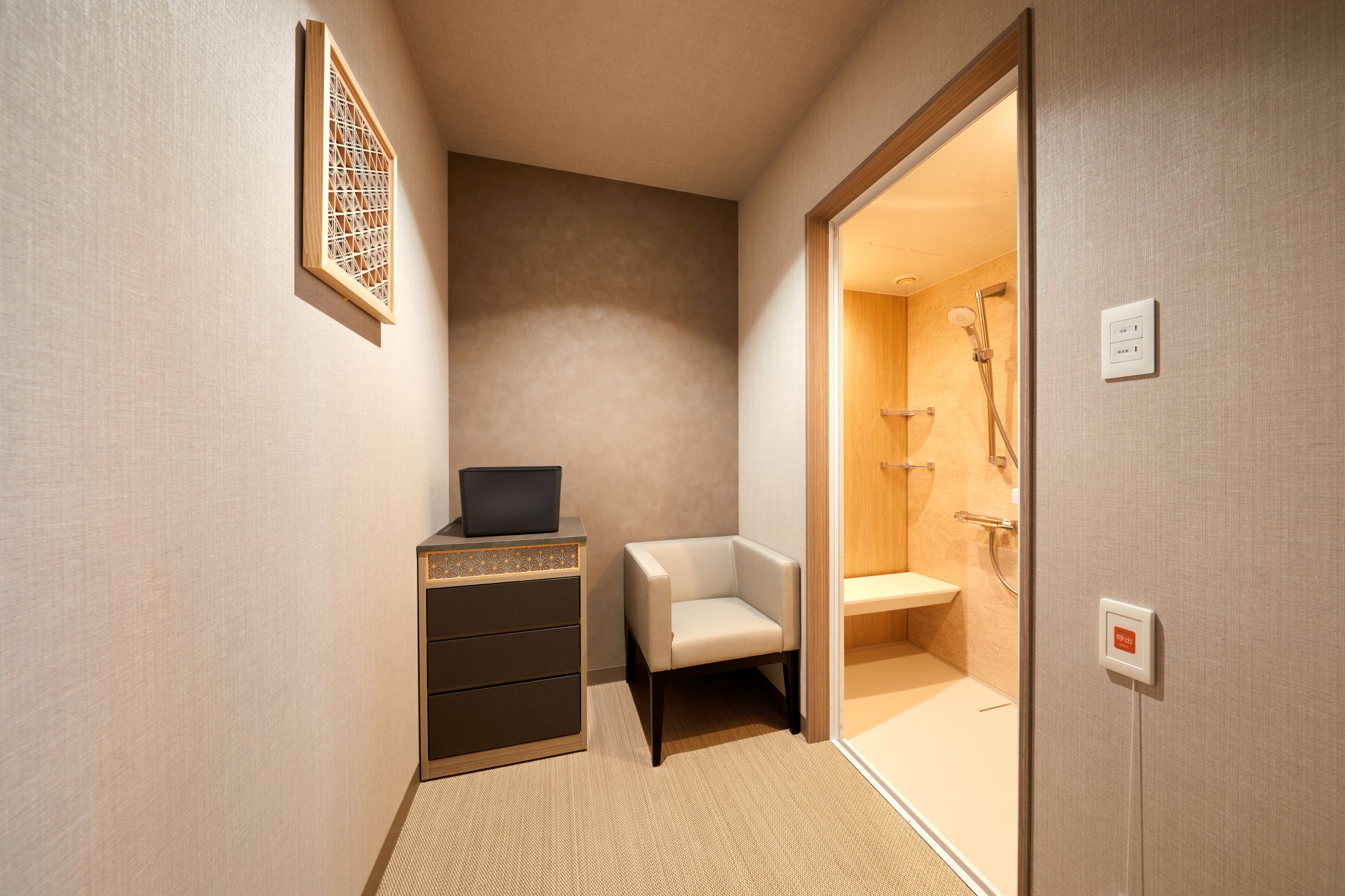 The new special room features a calming color palette and incorporates numerous products symbolizing kumiko, a traditional craft of Fukuoka Prefecture. The refined beauty of kumiko and the high-quality space created by the craftsmanship combine the preservation of local culture with a sense of luxury, offering a special healing environment.