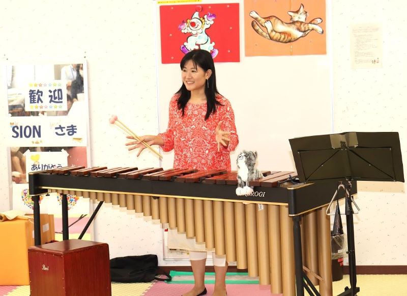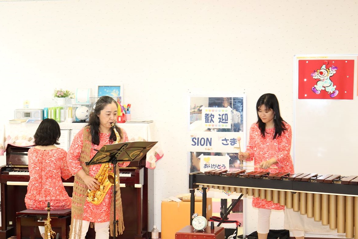 打楽器のマリンバ、木管楽器のサクソフォン、そしてピアノによるアンサンブルで、楽しいクイズ形式の演奏があったり、子ども達の大好きなアニメ主題歌をあつめた、アニメ・メドレーもありました。マリンバとピアノの体験に子ども達が参加し、かえるの歌をみんなで演奏したり歌ったりとても楽しい時間となりました。