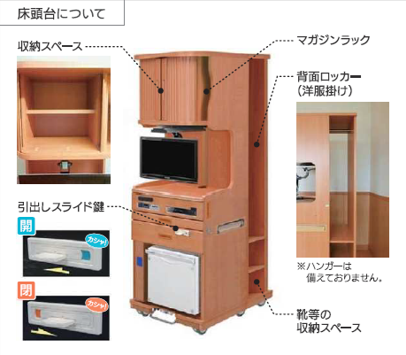 ※この床頭台は、4人部屋、特別室D・E、重症個室に設置しています。